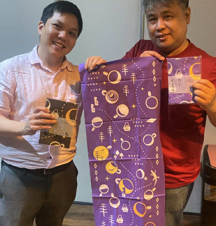As a selfish strategy, I would seek out cafes as my pop-up partners because my brain can't operate without good coffee. One of these cafes was Rich Watabe's SGD Coffee. We met last June 7, 2024 in his Quezon City cafe. I presented my Akishino Kama mugs from Ma by So Shi Te Tokyo. He was impressed by the ceramics from Yamaguchi. As a kendo player, he already was familiar with tenugui and would wear it as a bandana while roasting beans in the morning. Yet, he wanted me to do more than a pop-up store but have these arts and crafts be sold in his Manila Coffee Festival expo for March 2025. Rich replied that my inventory was too low for such a huge 3-Day event. These words challenged me to think bigger and create something original. It is especially from common customer inquiries that harped "Did you make this?" . As such, the seeds to be bolder were planted. While driving home after the meeting, the thought "Why don't I make my own tenugui?" lingered in my head. The idea to make my own tenugui was a dream but I didn't have tangible reason to justify it until now. The dots easily connected as the tenugui is used as a souvenir to promote cities in Japan and SGD was short for Sagada city. It fell into place to make a Sagada coffee tenugui for the Manila Coffee Festival to maximize my "raison d'etre" as a relevant spotlight partner.