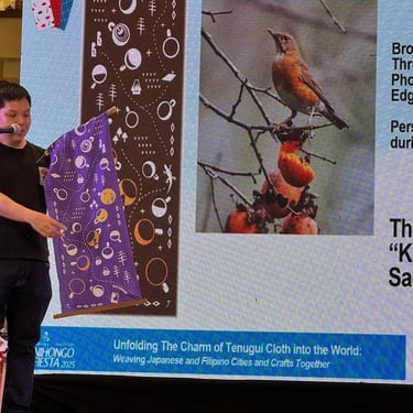 The Kasbang tenugui had a launch at Japan Foundation Manila's Nihongo Fiesta 2025 in Edsa Shangri-la Mall last February 22. It is a lucky day because this date is also cat day in Japan. The Nihongo Fiesta is an annual speech contest for nihongo learners. I was able to give a talk about co-designing the first Filipino tenugui with Hocus MNL and Sagada elders during this event. In turn, I met Edward Lee Chee Peng who is the president of Japan Language Society Malaysia (JLSM). He invited me share my love for tenugui online for his JL Fest 2025 last July 19, 2025.